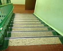 Способ монтажа: алюминиевый порожек без вставки крепится в проем между двумя напольными покрытиями или на ступени при помощи саморезов (идут в комплекте). Затем прорезиненную ПВХ вставку нужно нагреть строительным или обычным феном, либо подержать в горячей воде, чтобы материал стал мягче и легче вошел в паз профиля.